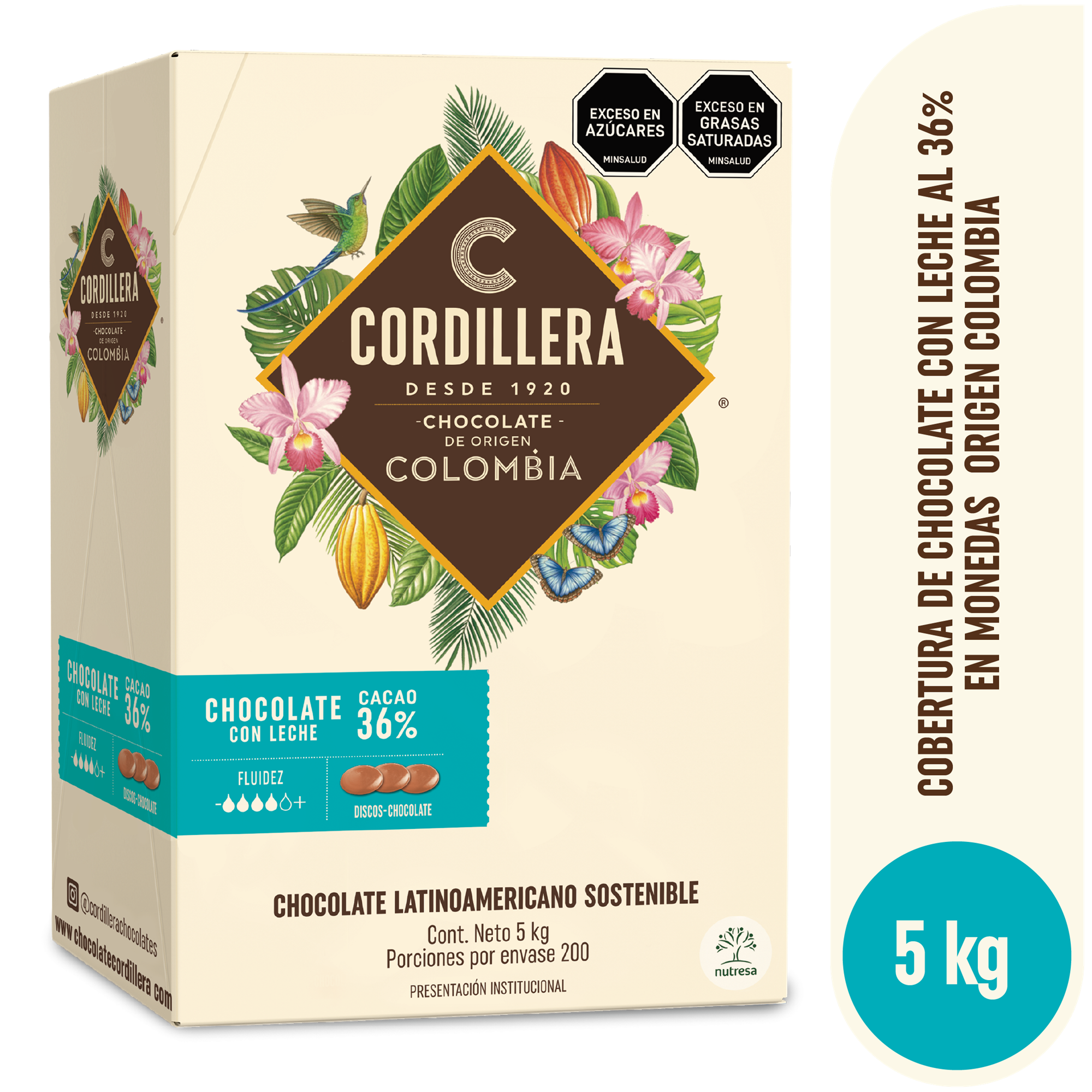 Cordillera Cobertura De Leche 36% Origen Colombia Depositados x 5kg