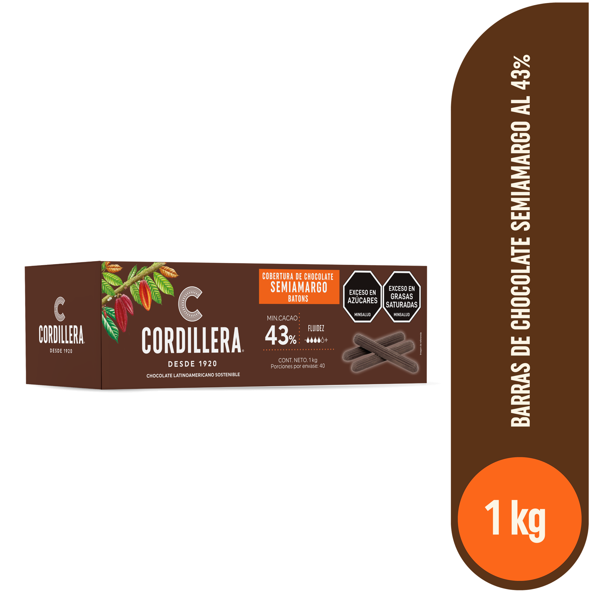 Cordillera Barra De Chocolate Semiamargo 43% caja x 1 kg